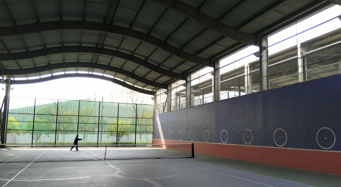 南京财经大学风雨网球?。何巳檬ι谝辜湟材芴逖橥蛟硕睦秩?,学校倾力打造了风雨网球场,该网球场位于仙林校区中苑运动场东侧,与原来中苑网球场相连,共两片标准场地,整体设计完全满足专业训练、比赛要求。风雨棚主体为彩钢无梁拱顶结构,防风防雨,场地为专业丙烯酸地面,耐磨防滑,500瓦led运动场地专用灯光,让网球运动不再有白天黑夜的限制。...
