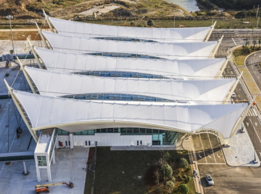 ?项目由华东建筑设计研究院有限公司设计,恒中天远公司主要负责中国七夕演艺中心舞台膜结构项目的制作安装施工,包括相应二次钢结构设计、膜材、制作加工、运输以及安装。该项目的膜材采用进口日本旭硝子250umETFE 膜材 ,耐久性达到20-25 年质保期,耐火等级达到难燃材料,透光性能达到90%以上透光率,颜色呈现透明等。...