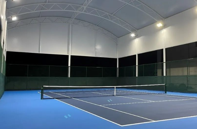 技术领域:本实用新型涉及一种雨棚,特别涉及一种网球场用可伸缩式雨棚。背景技术:室外的网球场是一种网球运动场地,由于是在室外因此一般都会搭建雨棚,但是传统的雨棚体积大,占用空间大,因此就需要设计网球场用可伸缩式雨棚,但是传统的网球场用可伸缩式雨棚由于雨棚体积大且重量重,因此在伸缩调节过程中非常不方便;对此需要设计一种网球场用可伸缩式雨棚。本实用新型公开了一种网......