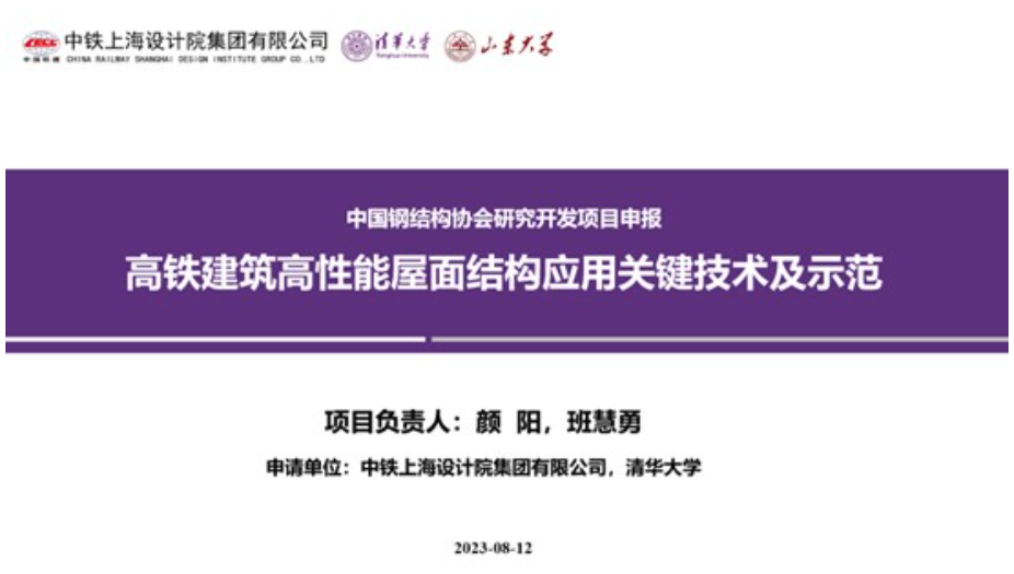 2023年8月12日下午,中国钢结构协会组织召开研究开发项目“高铁建筑高性能屋面结构应用关键技术及示范”立项评审会。该项目由中铁上海设计院集团有限公司和清华大学联合牵头申报,山东大学、中国铁建大桥工程局集团有限公司、中国铁路上海局集团有限公司、沪杭铁路客运专线股份有限公司、邢台路桥千山桥梁构件有限责任公司、扬州市综合交通运输学会、扬州市交通建设管理有限责任公司等单位合作申报。