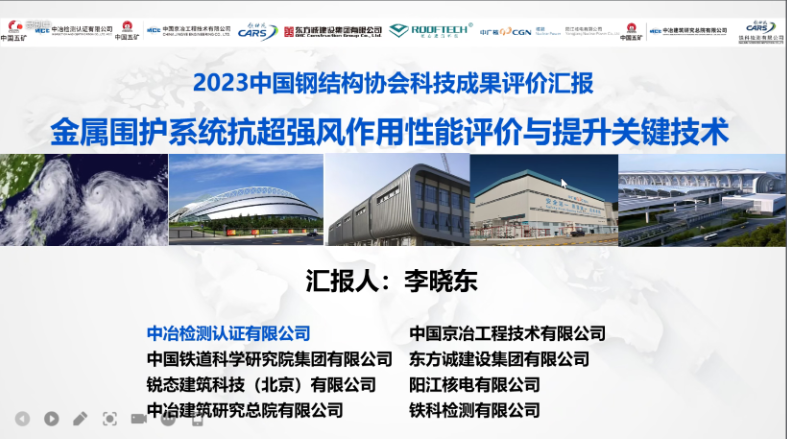 8月6日,中国钢结构协会组织召开“金属围护系统抗超强风作用性能评价与提升关键技术”科技成果评价会。该项目由中冶检测认证有限公司、中国京冶工程技术有限公司、中国铁道科学研究院集团有限公司、东方诚建设集团有限公司、锐态建筑科技(北京)有限公司、阳江核电有限公司、中冶建筑研究总院有限公司、铁科检测有限公司等单位共同完成。