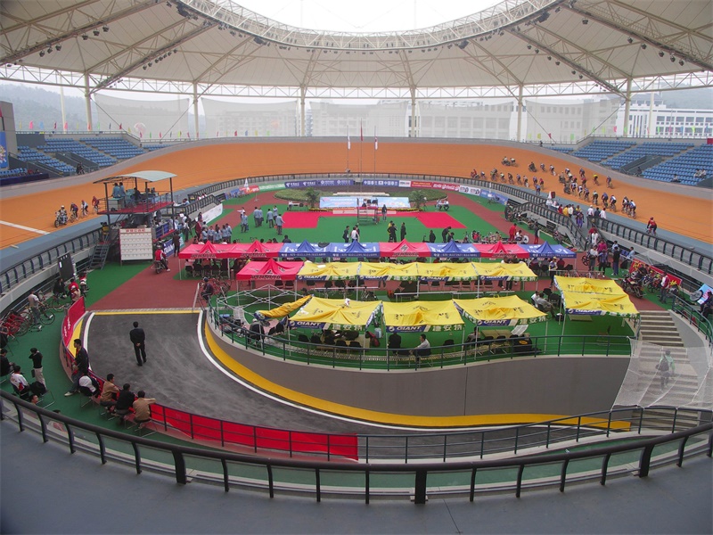 仙林国际自行车赛?。ㄊ嘶崛┰谀暇┠?,详细地址位江苏省南京市栖霞区仙林大道169号。场馆与户外的自行车越野赛道相连接,一体化的屋顶以自行车运动为灵感,为运动员和社区创造了共同的专业场地。自行车赛场膜结构工程跨度大、结构体系新颖、受力合理。
